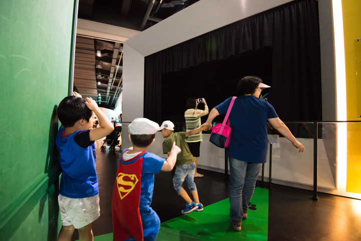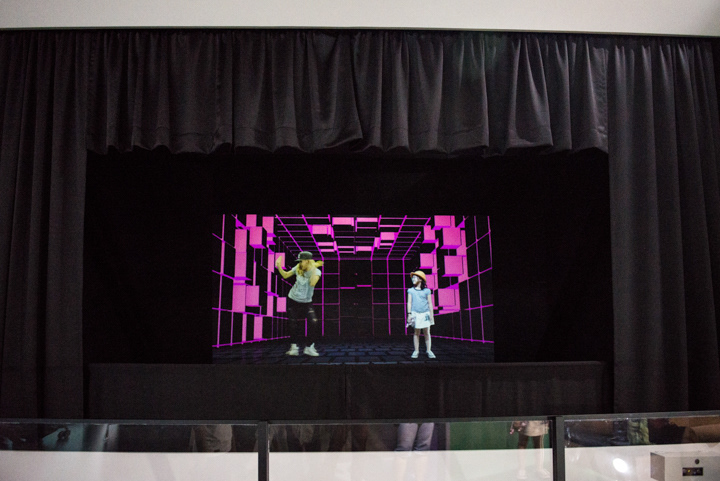 블루스크린을 통해 관람객의 모습을 실시간으로 화면에 투사시켜 함께 춤을 추는 모습을 연출할 수 있으며,