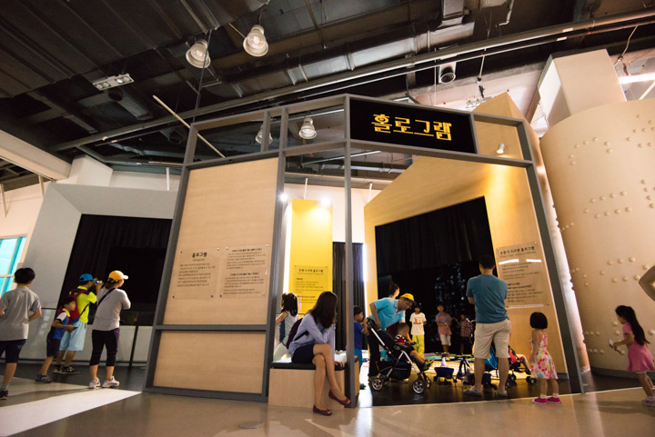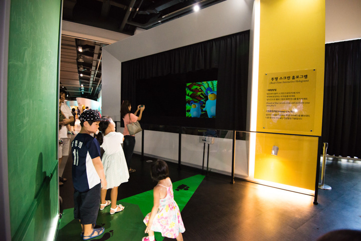 국립 과천과학관에 설치된 투명 필름을 이용한 홀로그램 전시품 입니다. 어린이들이 흥미를 가지고 재미있게