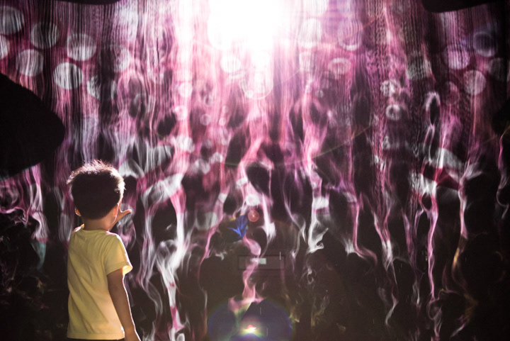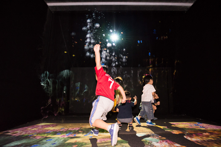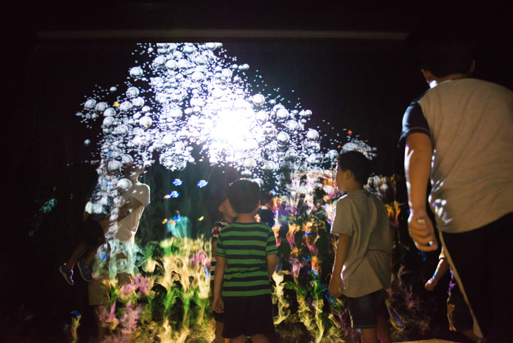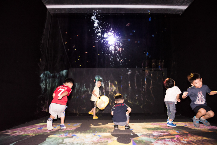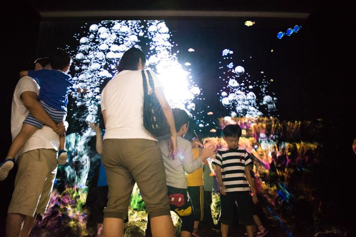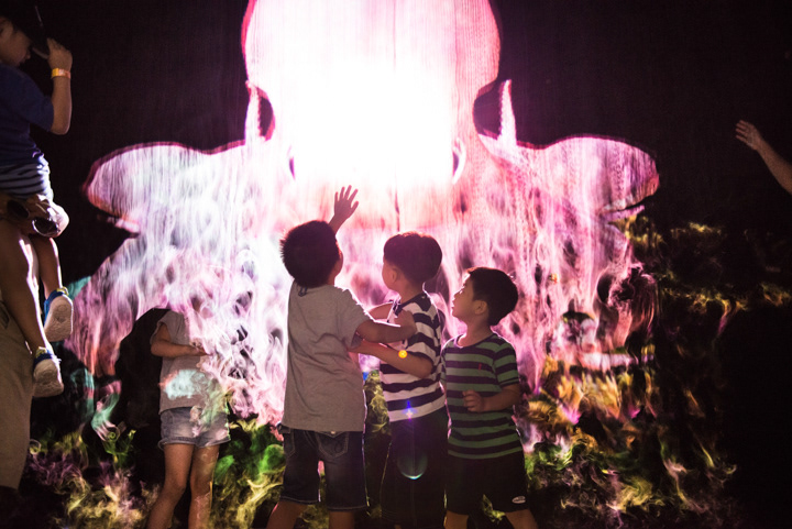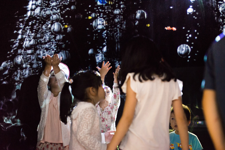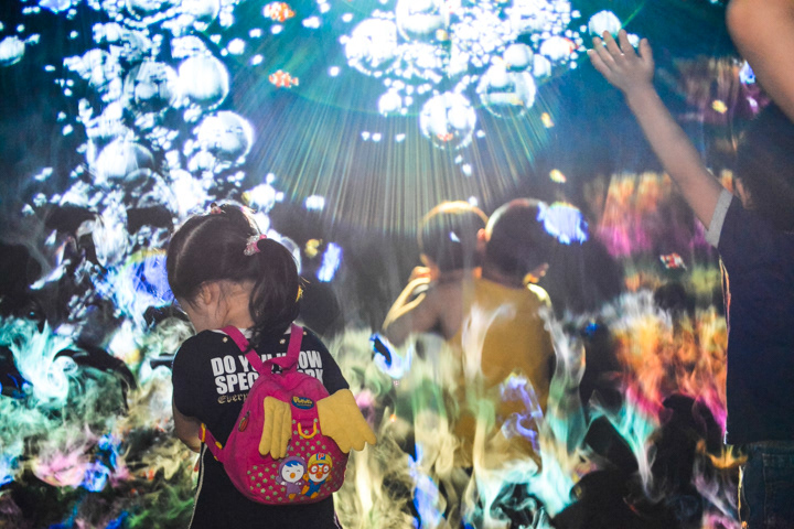 Interactive Fog Screen exhibit using steam .It does not spread to the space, on the scenery and space the appearance of in the sea and space. Children can touch fog screen directly with a curiosity was reflected through the sensor, various event image can constitute to occur in response to movement of the visitors, visitors will be able to new experiences through across following front of Fog screen .