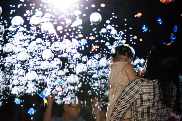 호기심을 가지고 직접 만져 볼 수 있는 콘텐츠를 프로젝터를 통해 투사하였습니다. 센서를 통해 다양한 이벤트