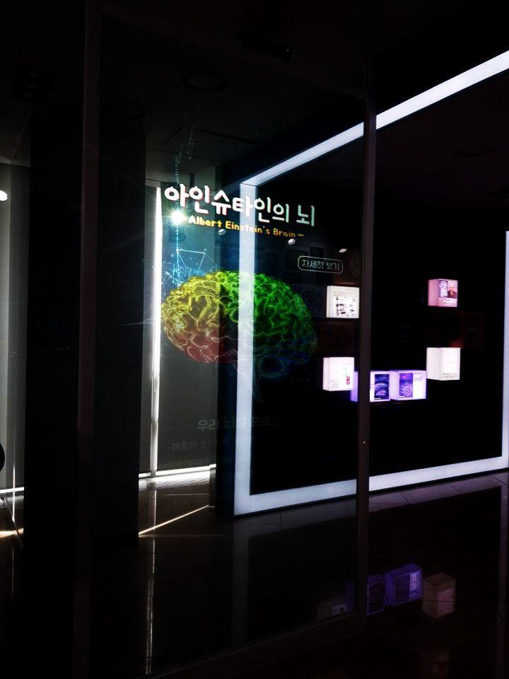 홀로그램 스크린 관객이 앞에 서면 뇌가 허공에 나타나서 움직이기 시작합니다.