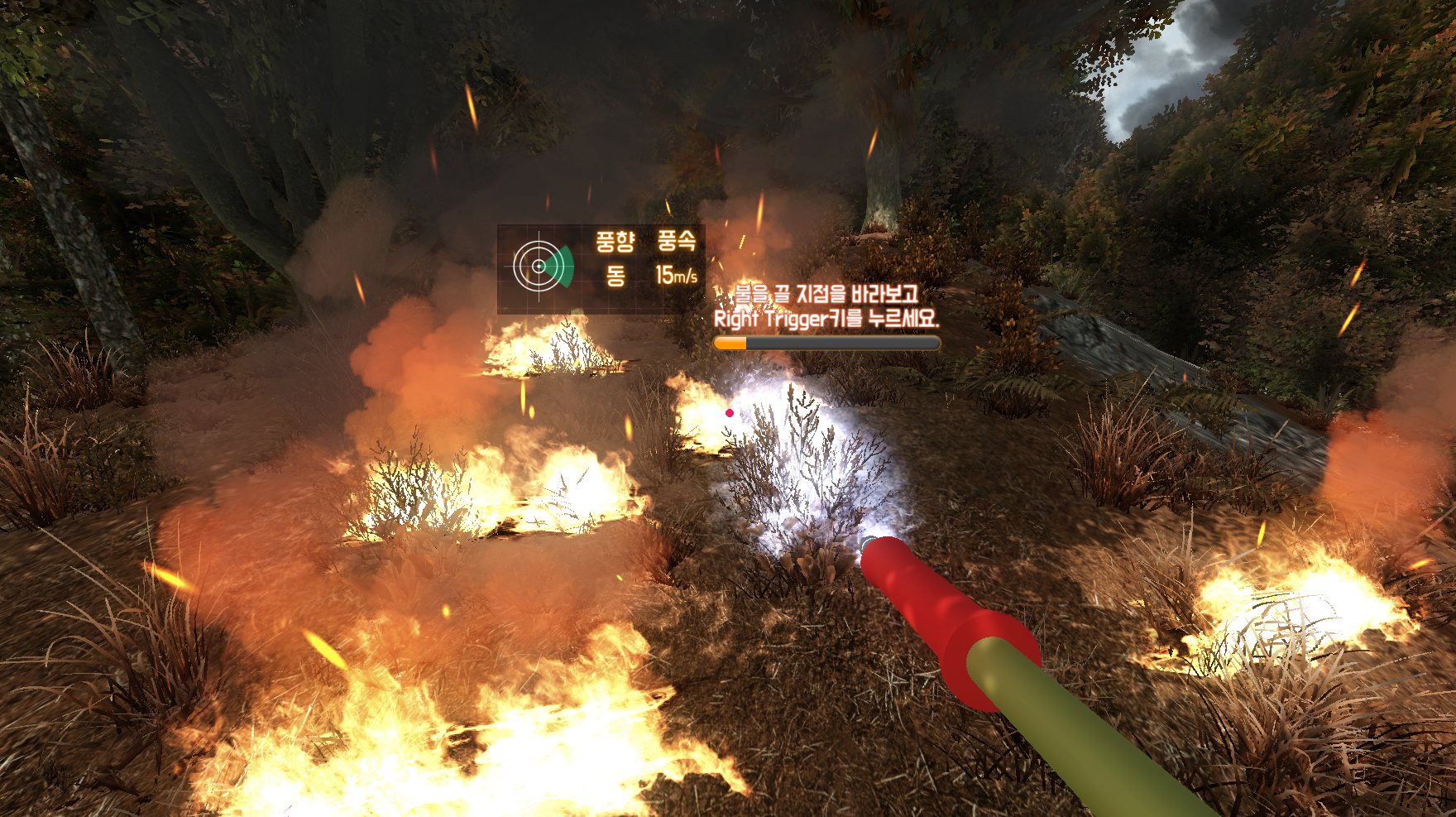 단순 영상 재생이 아니라 유저가 산속을 걸어 다니면서 산불을 끄는 체험을 하게 됩니다. 각각의 스테이지에 미션을 부여하고 해결하는 과정을 통해 산불의 무서움과 대응법을 직접 체험해 보는 콘텐츠입니다.