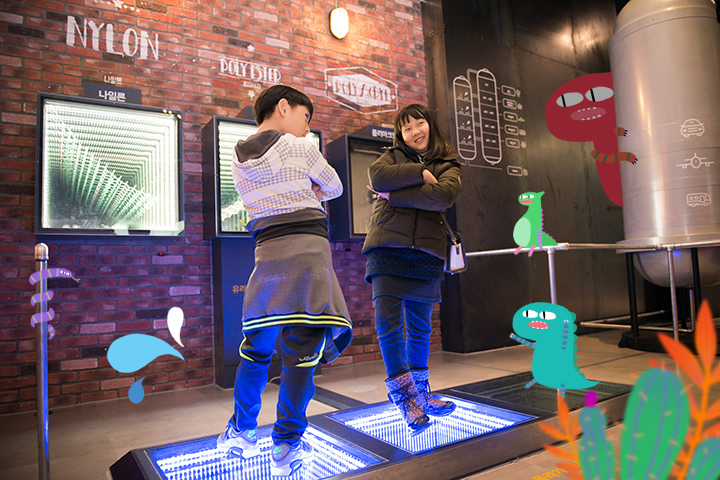 4번째로 미래 섬유에서는 섬유의 분자를 앉아서 만들어 볼수 있는 곳과 현미경으로 내 옷의 패턴을 관찰하게 하는 곳, 아라미드 옷에 대해 알아보는 아라미드 게임존등 다양한 콘텐츠가 있습니다.