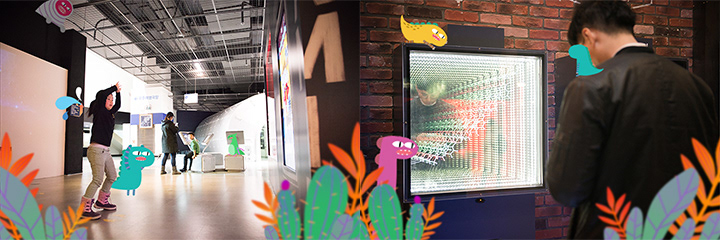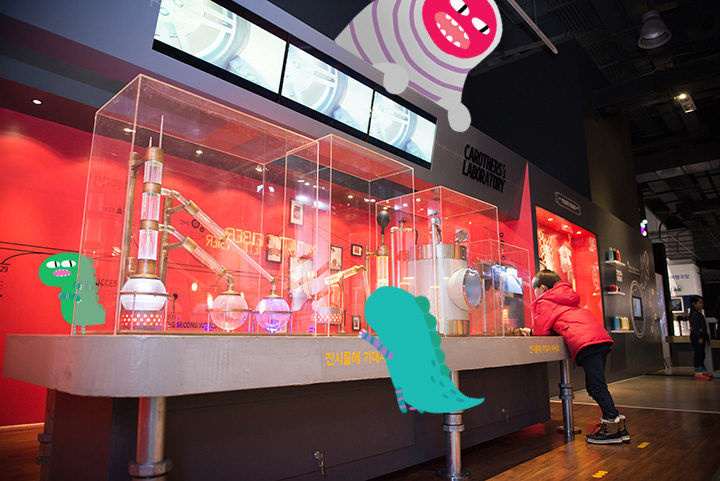 되는 과정 전시 존이 있습니다. 매우 어렵기 때문에 거울을 밟으면 인피니트 미러를 통해서 분자 모양이 무한히