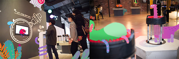 총 27개 가량의 전시물을 아름답게 전시해야 하였기 때문에 디자인에도 많은 신경을 썼고 공장분위기가 나면서
