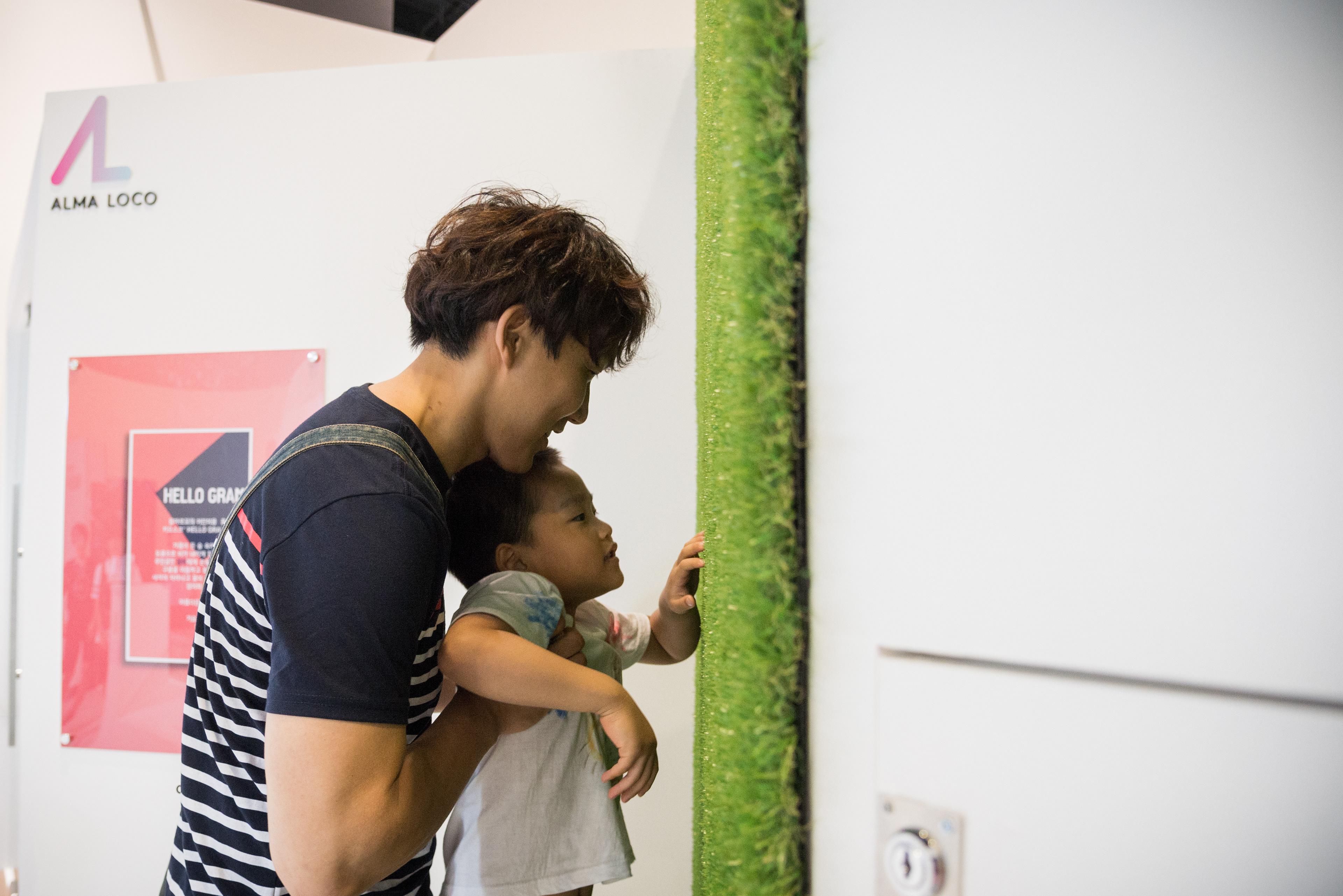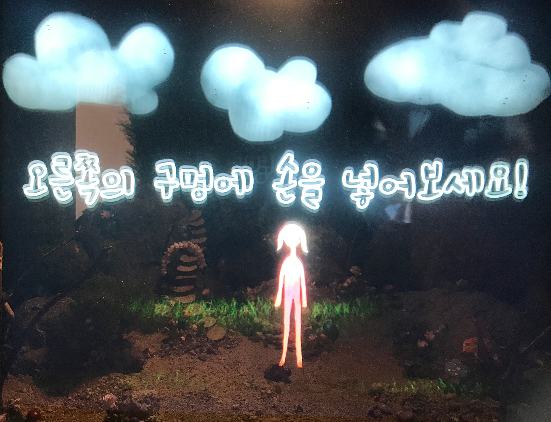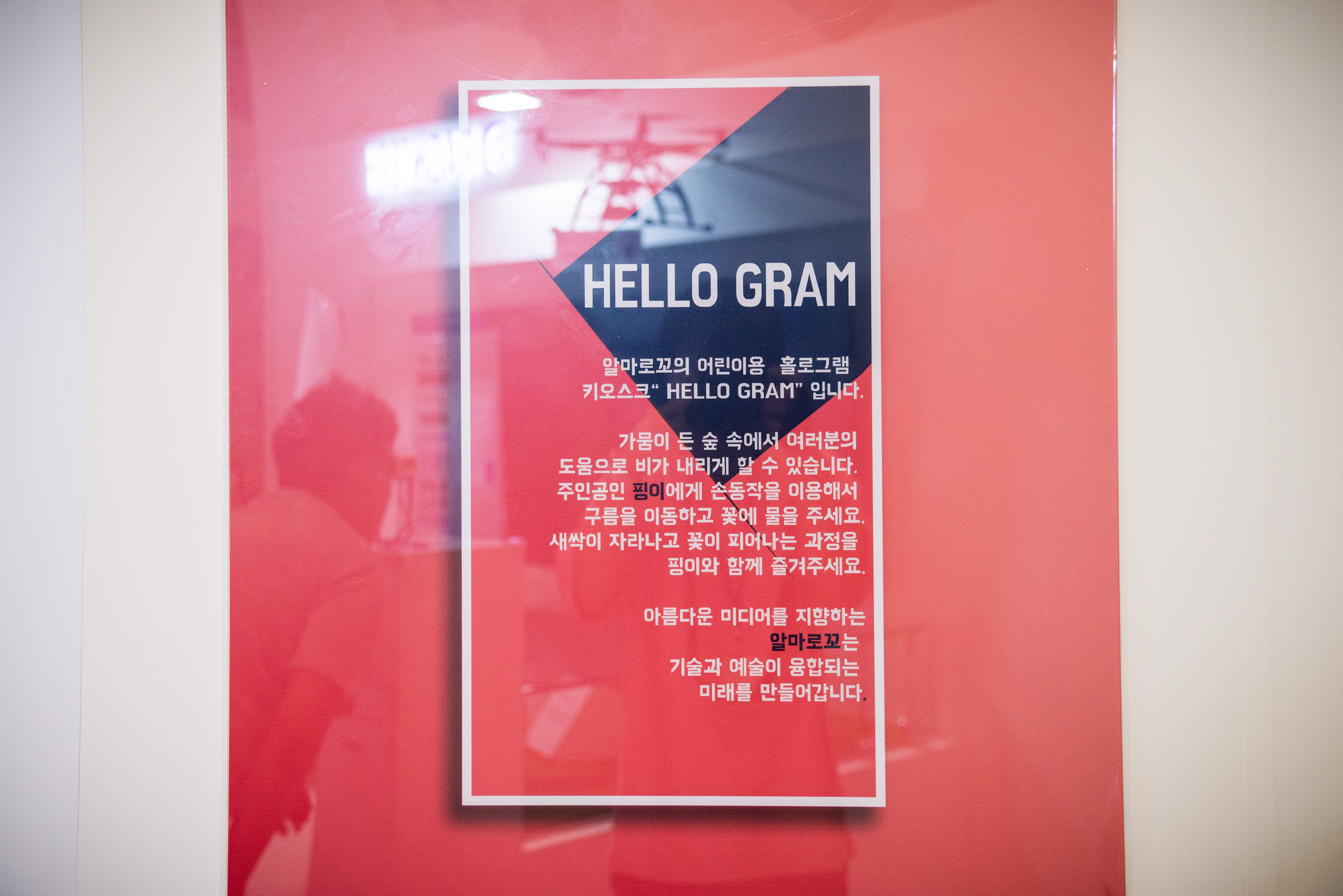 알마로꼬의 어린이용 홀로그램 키오스크인 HELLO GRAM은 가뭄이 든 숲 속에서